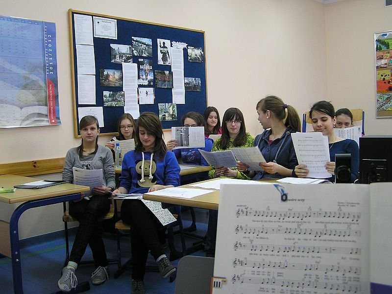 Muzyczne inspiracje Chóralne spotkania feryjne Drugi tydzień ferii upłynął sporej grupie gimnazjalistów pod znakiem jednej z greckich muz Apollina. Spotkali się oni ze swoim opiekunem - Damianem Popiołkiewiczem, by odświeżyć, a także nieco uzupełnić repertuar muzyczny, a przy okazji miło spędzić czas. Chórzyści rozśpiewywali się między innymi przy standardach - na przykład z repertuaru Leonarda Cohena, jak też przywoływali muzycznie wiosnę, która czeka być może gdzieś uśpiona na Ponidziu (tak przynajmniej przekonywała niegdyś Wolna Grupa Bukowina).