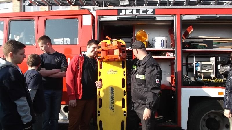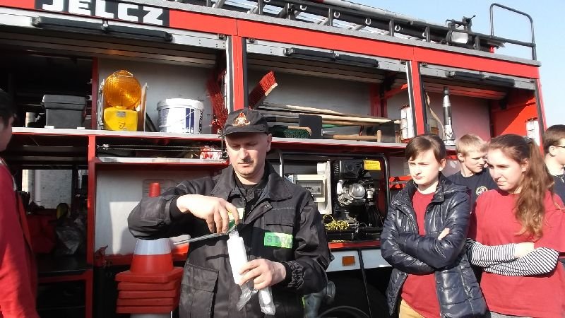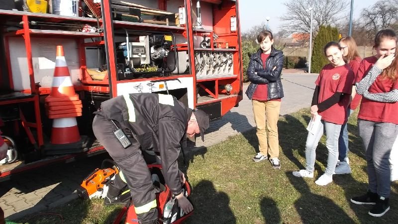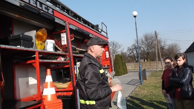 W dniu 19 marca w ramach edukacji dla bezpieczeństwa odbyło się spotkanie z zawodowym strażakiem p. Krzysztofem Bednarczykiem. Uczniowie klas trzecich naszego gimnazjum dowiedzieli się jak zapobiegać pożarom, jak zadbać o bezpieczeństwo swoje i innych w czasie pożaru. Każdy mógł z bliska zobaczyć sprzęt do gaszenia ognia i ratowania życia poszkodowanym, w który jest wyposażony wóz strażacki. To było bardzo ciekawe spotkanie. Może ktoś z jego uczestników zostanie kiedyś strażakiem?...