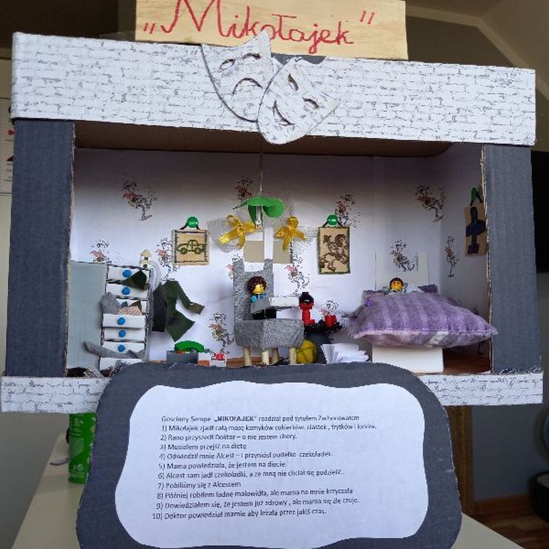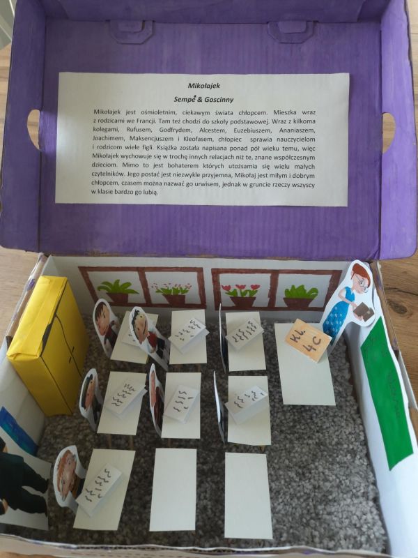 Przedłużające się nauczanie zdalne demotywuje uczniów, więc omawianie lektur staje się nie lada wyzwaniem. Dlatego istnieje potrzeba poszukiwania nowych sposobów dotarcia do  odbiorców w trakcie analizy utworów literackich. Zdarza się, że  jedni tworzą komiksy, drudzy przygotowują lapbooki lub plakaty, gry planszowe. Mało znaną metodą  jest tzw. „książka w pudełku”. Charakteryzuje się tym, że  uruchamia wielkie pokłady kreatywności uczniów, pozwala zaprezentować własną wrażliwość i indywidualny odbiór dzieła literackiego. Mało tego, porusza  ona wyobraźnię dzieci oraz sprawia, że treści danej książki  zapadają w pamięci na bardzo  długo.