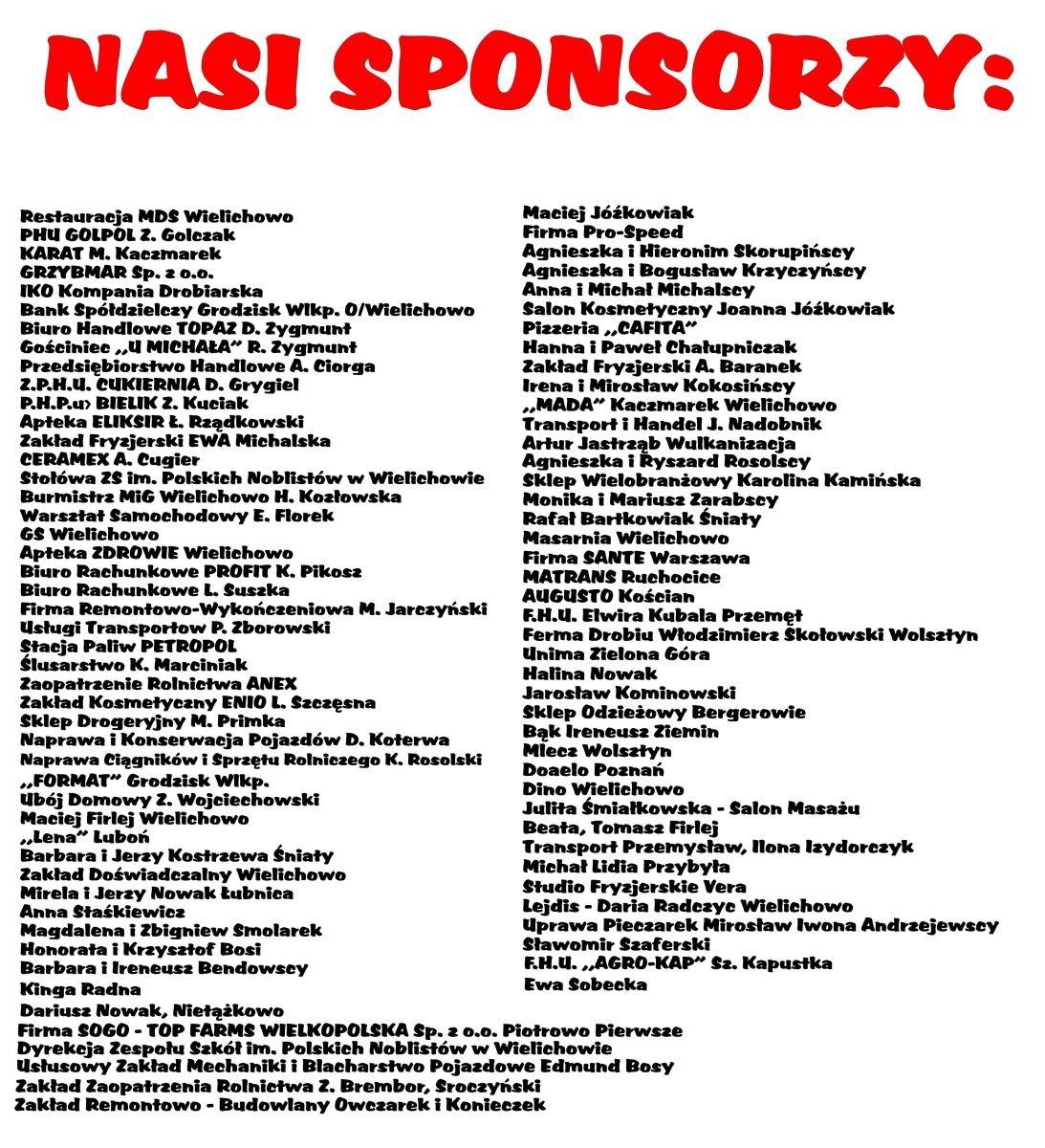 "W imieniu organizatorów Walentynkowego Balu Karnawałowego wszystkim Sponsorom mówimy - DZIĘKUJĘ"