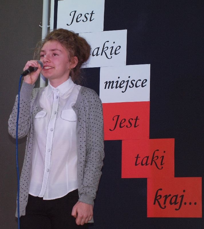 Tym razem, okazją do spotkania w listopadowe popołudnie stało się wspomnienie ojczyźniane. Młodzi wykonawcy – recytatorki, wokaliści i instrumentaliści wyrazili swój szacunek, a jednocześnie oddali hołd Ojczyźnie, za której wolność życie oddało wielu naszych przodków. Ze sceny popłynęły poetyckie słowa, jak również nuty – mniej lub bardziej znanych – pieśni i piosenek o charakterze patriotycznym. Była także wokalna rewia przebojów partyzanckich, które wykonali członkowie szkolnego Chóru oraz zespołu Chórek Wesołych Chmurek.