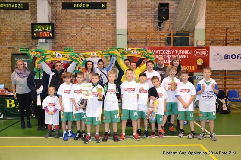 W dniach 19-21.12.2014 zespół Noblistów Wielichowo rocznik 2004 brał udział w turnieju piłki koszykowej Biofarm Cup w Opalenicy, który był organizowany dla chłopców z rocznika 2003 i młodszych. Do rywalizacji przystąpiło osiem zespołów podzielonych na dwie grupy. Pierwszy mecz rozegraliśmy z TKM Włocławkiem, który zakończył się naszą porażką 34 – 70. W kolejnym spotkaniu grupowym również odnieśliśmy porażkę, tym razem z Pyrą Poznań 27 – 56. W ostatnim pojedynku w grupie z zespołem Basket Gorzów Wlkp. odnieśliśmy zwycięstwo po bardzo emocjonującym spotkaniu, po dwóch dogrywkach 47 – 46 i zapewniło to nam trzecie miejsce w grupie. W fazie półfinałowej zmierzyliśmy się z zespołem Kormorana Sieraków. Mecz zakończył się naszym zwycięstwem 33 – 23. Dzięki niemu w ostatnim dniu turnieju zagraliśmy ponownie z Basketem Gorzów Wlkp. o piąte miejsce. Po raz drugi pokonaliśmy zespół z Gorzowa 34 – 29 i zajęliśmy ostatecznie piąte miejsce w turnieju. Należy pochwalić chłopców za dobre występy i zajęcie piątego miejsca, tym bardziej, że byliśmy jednym z dwóch zespołów, które były młodsze od swoich przeciwników.