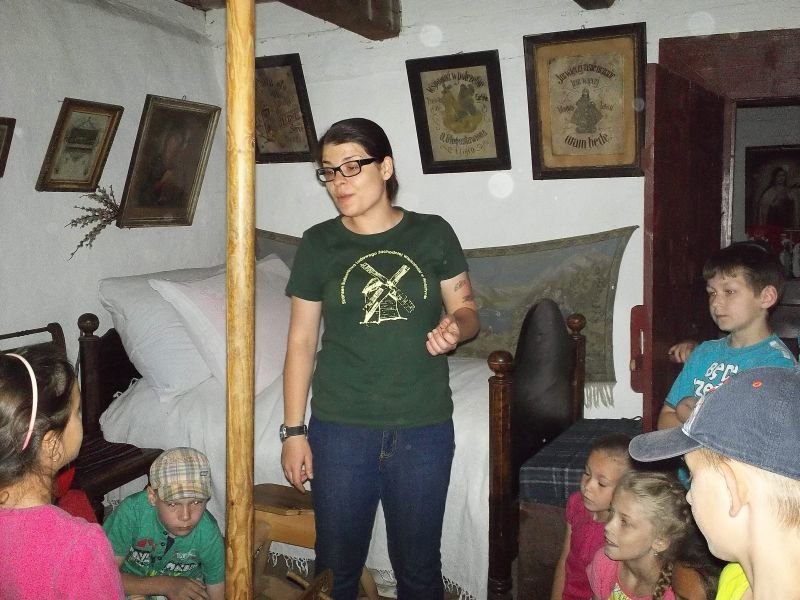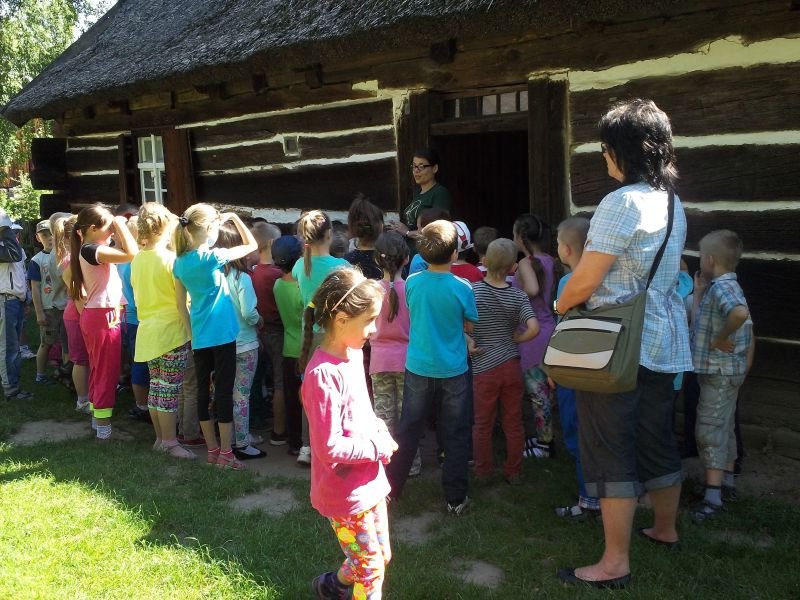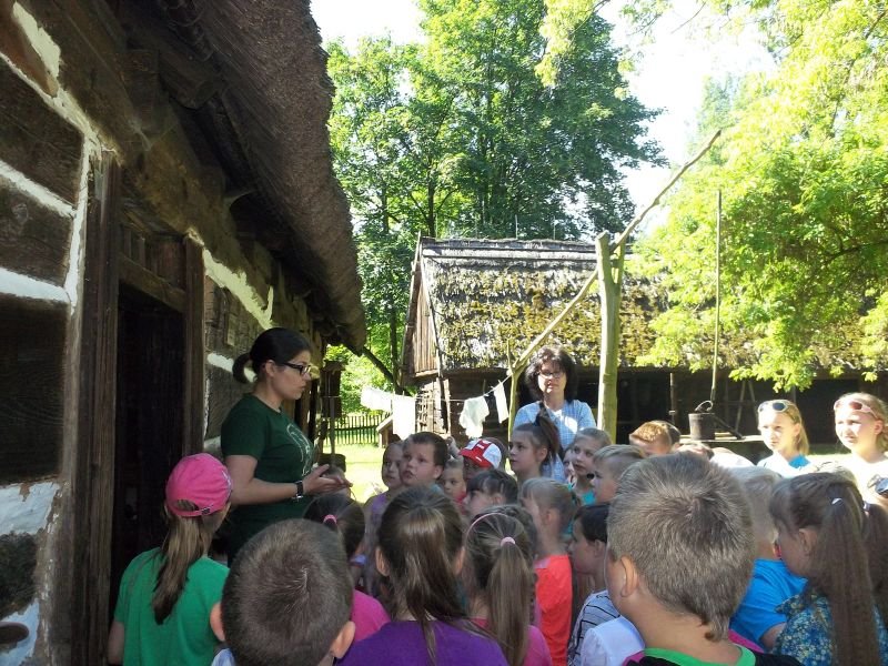 W tym właśnie skansenie byli 18 czerwca 2014r. uczniowie klas pierwszych i drugich wraz ze swymi wychowawczyniami – M. Andrzejewską, M. Weiss, Z. Kucharczyk i A. Błażejczak. Mieli tam okazję zobaczyć prezentowaną architekturę i wnętrza charakterystyczne dla zachodniej Wielkopolski. Podziwiali wiatrak, kuźnię oraz karczmę. Podczas lekcji muzealnej samodzielnie robili masło, młócili cepem zboże, które później mielili na mąkę. Spróbowali swoich sił piorąc bieliznę na tarce i nosząc wodę w drewnianych naczyniach. Po tej, jakże wyczerpującej pracy, bardzo smakowała kiełbasa usmażona przy ognisku oraz chleb ze świeżo zrobionym masłem i maślanka. Na medal spisała się też pogoda. Piękne słońce dodało każdemu odrobinę opalenizny i wprowadziło powoli już wakacyjny nastrój.
