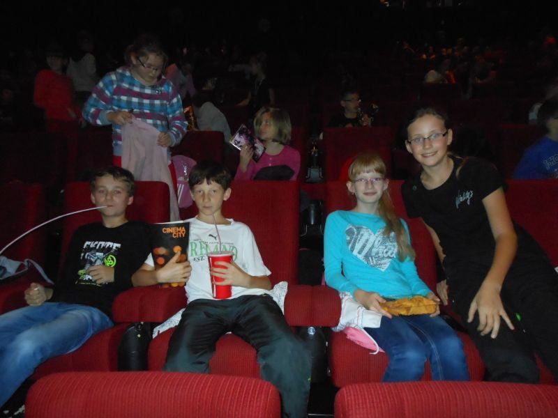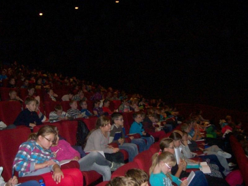 28 października to dla uczniów klas 4-6 dzień wyjątkowy, bowiem związany z wyjazdem do kina w Poznaniu. Tam, punktualnie o 10.45 wszyscy uczniowie wraz z wychowawcami i opiekunami (łącznie 139 osób) wzięli udział w lekcji  pt. „Sekrety X muzy”. Najpierw, pod bacznym okiem aktora uczyli się określeń związanych z kinem, obejrzeli pierwszy film braci Lumiere, poznali postać Charliego Chaplina oraz porównali dawne i współczesne filmy. Dowiedzieli się również o skutkach pierwszych eksperymentów z kolorem odkrywając tajniki tworzenia efektów specjalnych. Następnie poznali jak działa kino trójwymiarowe, a oprócz tego obejrzeli fragmenty różnorodnych filmów np. „Opowieści z Narnii”, „Alicja w Krainie Czarów”, „Park Jurajski”, „Harry Potter”, „Avatar”, „Mali agenci 3D”. Na koniec lekcji wzięli udział w quizie, powtarzając nowe wiadomości i pojęcia, takie jak: kinematograf, gag, trick, zjawisko powidoku oraz tworzywo sztuki. Po piętnastominutowej przerwie  uczestniczyli w seansie filmowy pt. „Podróże Guliwera”. To uwspółcześniona ekranizacja słynnej powieści Jonathana Swifta. Główny bohater dostaje od losu szansę zmienienia pracy na lepszą, ponieważ ma okazję podróżować służbowo na Bermudy. Zamiast wyjaśnić tajemnicę trójkąta bermudzkiego, trafia do krainy Liliputów zamieszkałej przez miniaturowych mieszkańców, którym pomaga w walce z wojowniczymi sąsiadami. Maluczcy traktują każdą bzdurę wypowiedzianą przez Gulivera jak świętość. Kiedy ratuje ich od prześladowców, czynią go swoim generałem i budują dla niego przepiękny dom. Guliver wreszcie czuje się kimś wyjątkowym, a nie czterdziestoletnim nieudacznikiem. Film jest  ciepłą, rodzinną komedią. Nie brakuje sytuacji o zaskakującym, komicznym rozwiązaniu. Urzekają także  przepiękne krajobrazy krainy Liliputów. Z pewnością rozbawił i zainteresował wielichowską społeczność uczniowską.