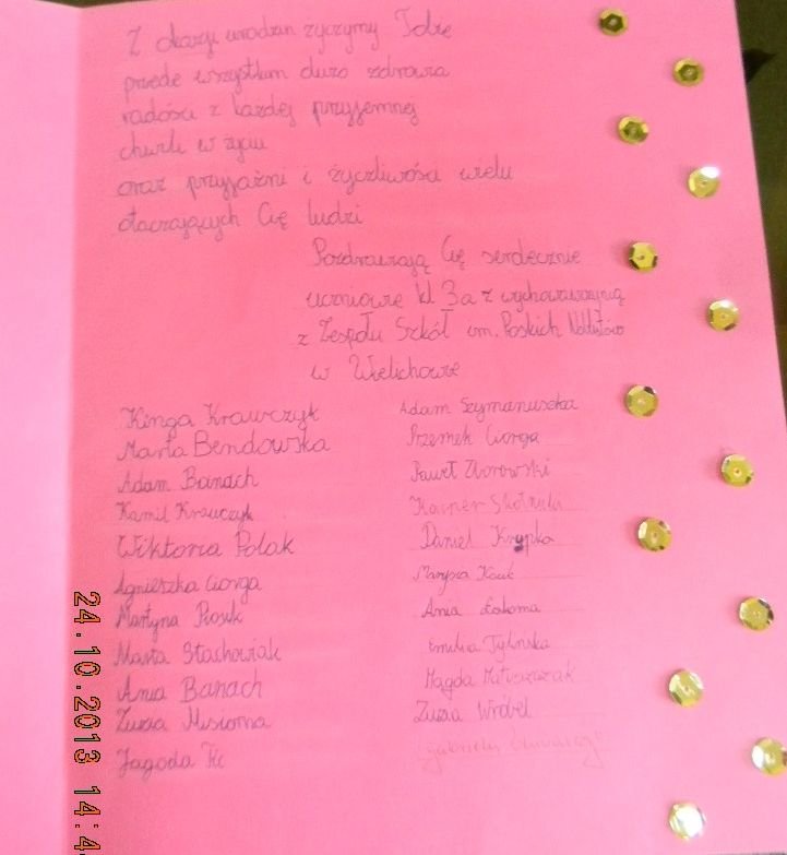 Kartka urodzinowa dla Oliwki od uczniów kl. 3a