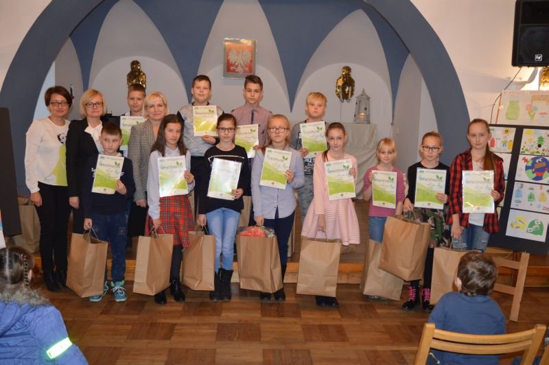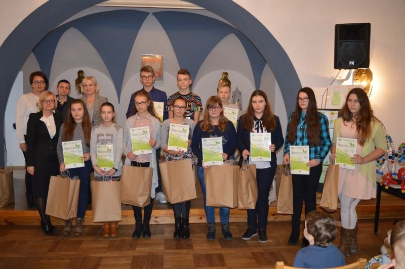 Chcemy żyć w otoczeniu pięknej przyrody i czystym środowisku. Aby tak było, musimy sami o to zadbać. Okazuje się, że uczniowie naszego Zespołu Szkół doskonale o tym wiedzą i zawsze chętnie angażują się we wszystkie akcje ekologiczne. Tak było również tym razem. W środę 23 listopada w Centrum Kultury odbyło się uroczyste podsumowanie projektu „Dobre rady na odpady” zorganizowanego przez Urząd Miejski w Wielichowie. Uczniowie naszej szkoły licznie wzięli udział w konkursach przeprowadzonych w ramach tego przedsięwzięcia. Prace plastyczne i hasło reklamowe miało zachęcać mieszkańców gminy do ograniczenia produkcji śmieci i ich właściwej segregacji. Jak się okazało prace „noblistów” zachwyciły jury konkursowe. W każdej kategorii wiekowej odnieśliśmy sukces. Nagrody zwycięzcom i wyróżnionym wręczyła Pani Burmistrz Wielichowa Honorata Kozłowska wraz z zastępcą Panią Ewą Kasperską. Oto nagrodzeni: w kategorii klas 0 – III szkół podstawowych I miejsce zajął Jędrzej Pikosz z kl. 0b, II miejsce - Wiktor Ciesielski z kl. 0b, III miejsce - Ewa Krzyczyńskaz kl. 3a, a wyróżnienia otrzymali Agata Drożdżyńska z kl. 3c, Szymon Michałowski z kl. 0a, Matuszewska Michalina z kl. 2a, Filip Szymanuszka z kl. 2b, Jaśmina Wąchnicka z kl. 0a, Bartosz Skorupiński z kl. 3c oraz Maciej Banach z kl. 3a; w kategorii klas IV – VI I miejsce zajął Adrian Melerowicz z kl. 4b, II miejsce - Emilia Tylińska z kl. 6a, a wyróżnieni zostali Kinga Krawczyk kl. 6a, Emilia Michałowska kl. 5b, Maria Mańkowska kl. 4a, Weronika Weis kl. 5a, Marek Andrzejewski kl. 5b, Kinga Osińska kl. 5b, Marcel Perz kl. 4a, Bartosz Wróbel kl. 5a, Kornelia Weiss kl. 4b; w kategorii gimnazjum I miejsce zdobyła Magdalena Łowigus kl. 2c, II miejsce - Emilia Superlak kl. 2b, III miejsce – Dariusz Koterwa kl. 1c, wyróżnienia otrzymali Natalia Michałowska kl. 3a, Wojciech Ruta kl. 2b, Wiktoria Stachowiak kl. 2b, Mateusz Tic kl. 2d, Patrycja Nijaka kl. 1d, Amelia Koziołek kl. 1c, Magdalena Jankowiak kl. 1c, Natalia Malcherek kl. 1c oraz Tamara Szweda kl. 1b. Nagrodzone prace zostaną zamieszczone w kalendarzu na rok 2017, a obecnie można je zobaczyć odwiedzając Urząd Miejski w Wielichowie.