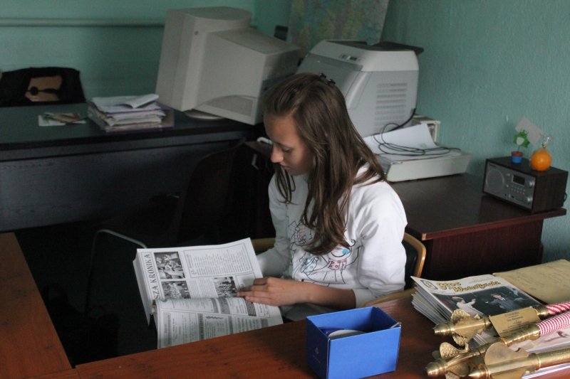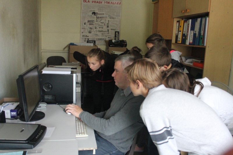Ośmioro uczestników koła dziennikarskiego, uczniów klas szóstych, 23 czerwca udało się do Wolsztyna, gdzie w redakcji i drukarni „Głosu wolsztyńskiego” przyglądali się powstawaniu gazety. Pani Anna Grudziecka – Domagalska, redaktor naczelny i właściciel gazety, opowiedziała, kiedy i jak zrodził się pomysł powstania pisma, jaki jest jego główny cel oraz pokazała archiwalne numery, aby uczniowie mogli porównać je z współczesnymi. Pan Robert Staszewski, zajmujący się składem komputerowym, zademonstrował m.in. łamanie tekstu, czyli tworzenie z niego kolumn na stronie, wklejanie zdjęć oraz rozmieszczanie i ciekawy wygląd tytułów. Uczniowie mieli również okazję zobaczyć film ukazujący historię istniejącego od 20 lat „Głosu wolsztyńskiego”. Gazety, która jak podkreśla pani Anna jest pismem obywatelskim.