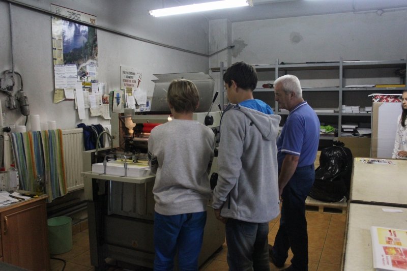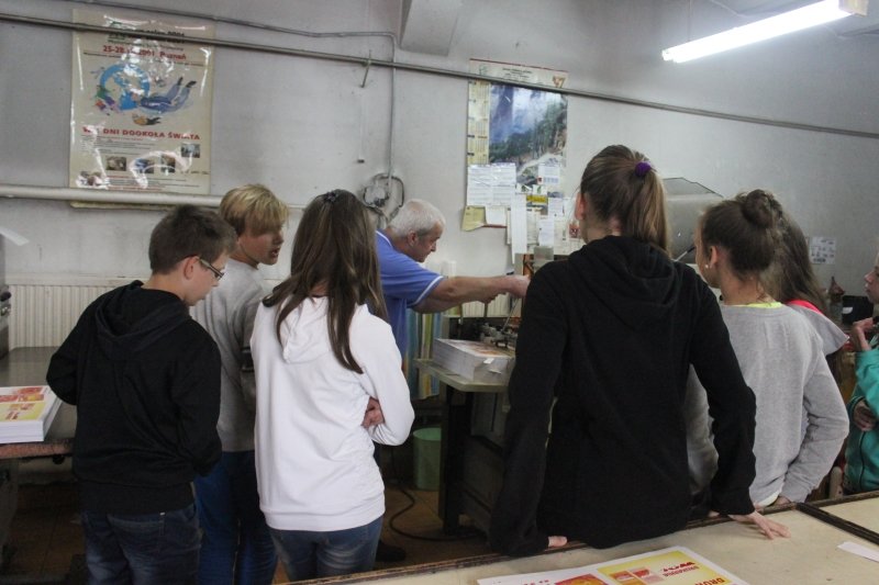 Młodych adeptów sztuki dziennikarskiej szczególnie zainteresował sposób drukowania gazety. Z zapartym tchem słuchali i przyglądali się pracy drukarza, który akurat przygotowywał okładkę najnowszego numeru.