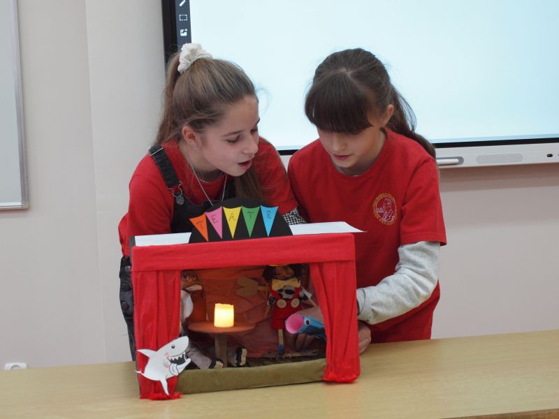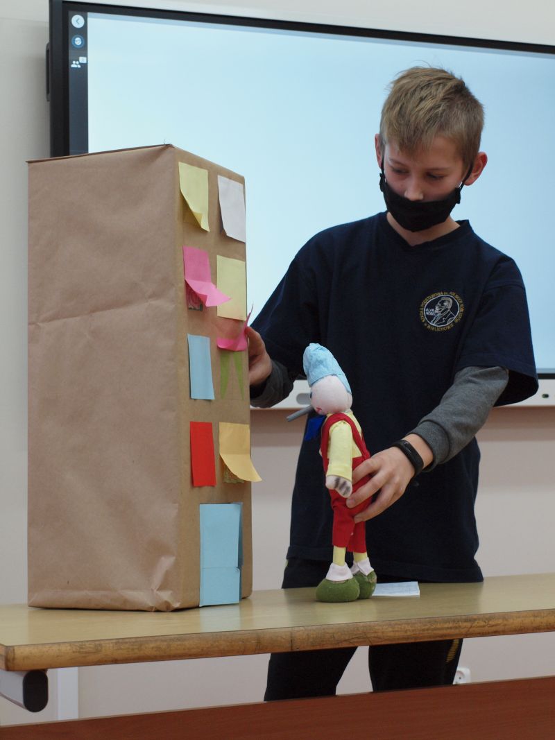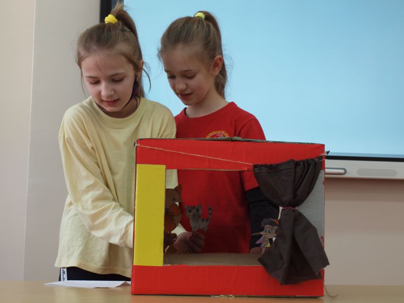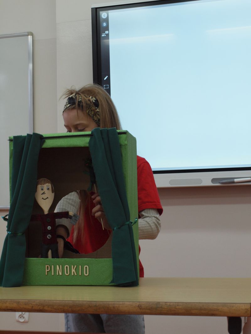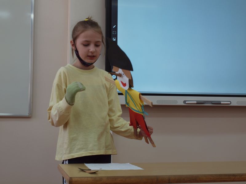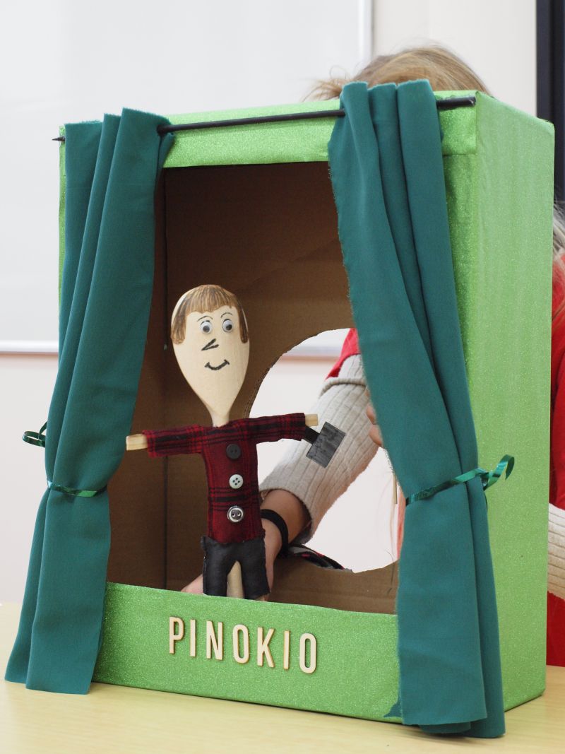 Książka C.Collodiego o drewnianym pajacu, który marzył o tym, by zostać prawdziwym chłopcem, bawi i inspiruje kolejne pokolenia młodych czytelników. Wśród nich znaleźli się także uczniowie klasy 4b Szkoły Podstawowej im. Polskich Noblistów. Każdy z nich przygotował sceniczną wersję, wybranego wcześniej przez siebie, fragmentu lektury. Oczywiście droga do ostatecznej prezentacji wiodła przez kilka etapów. Najpierw, uczniowie dowiedzieli się jak wygląda praca w teatrze animacji, jakie istnieją rodzaje lalek i jak może wyglądać spektakl z ich udziałem. Później, własnoręcznie przygotowali „aktorów” – wykorzystując przy tym bardzo różne techniki – oraz elementy scenografii. W dalszej kolejności powstały afisze oraz zaproszenia na spektakl, a właściwie kilkadziesiąt krótkich przedstawień.