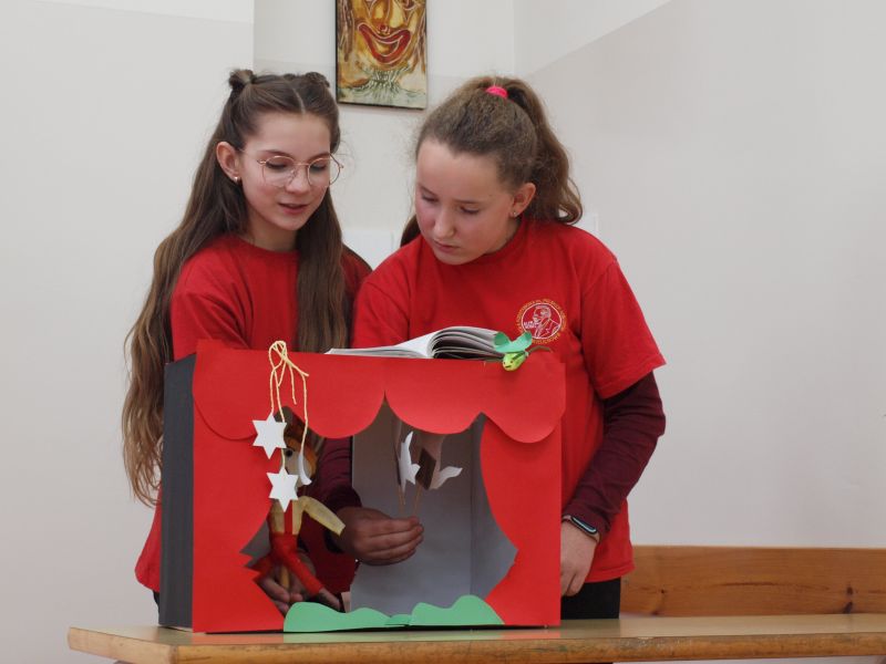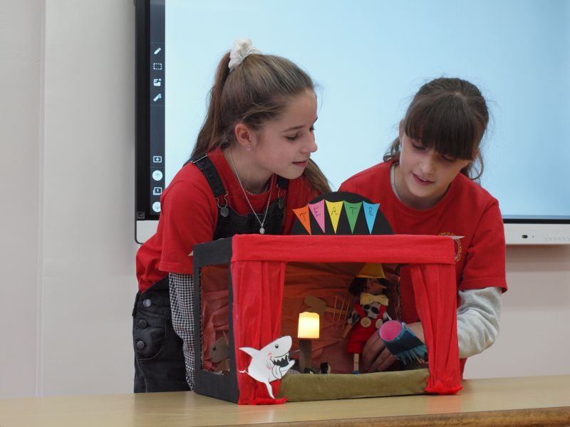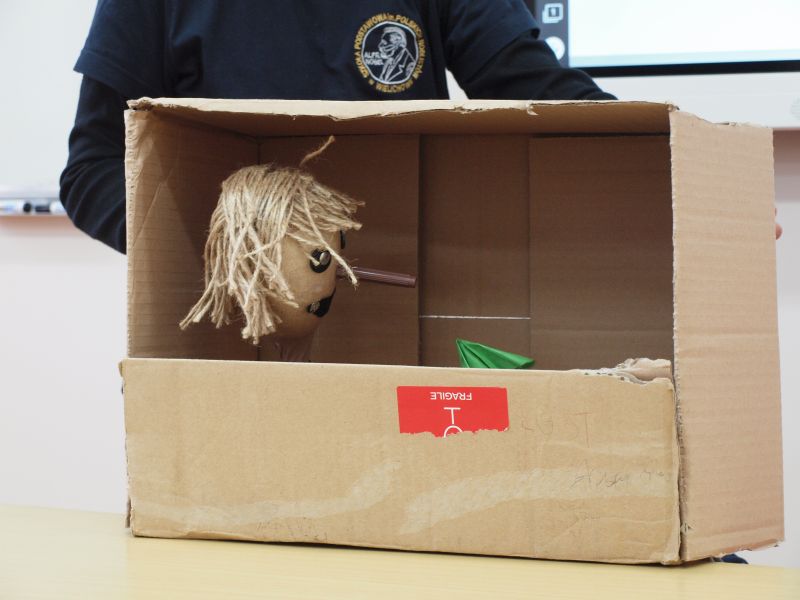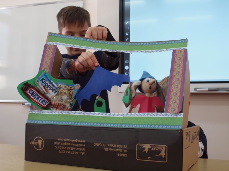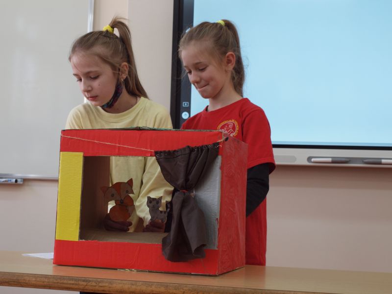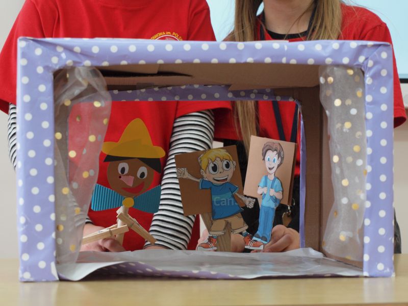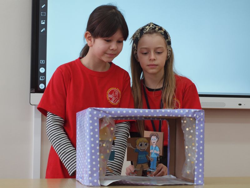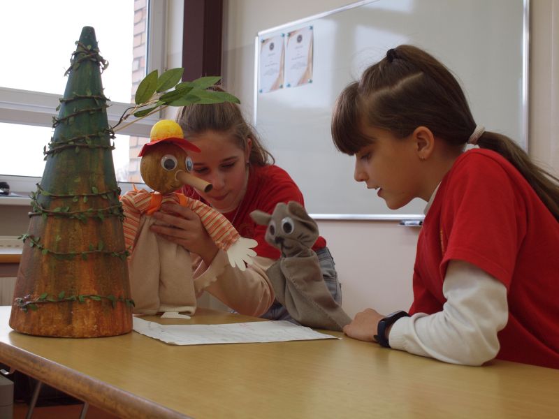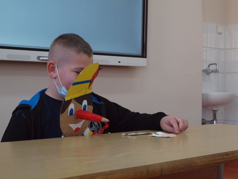 Książka C.Collodiego o drewnianym pajacu, który marzył o tym, by zostać prawdziwym chłopcem, bawi i inspiruje kolejne pokolenia młodych czytelników. Wśród nich znaleźli się także uczniowie klasy 4b Szkoły Podstawowej im. Polskich Noblistów. Każdy z nich przygotował sceniczną wersję, wybranego wcześniej przez siebie, fragmentu lektury. Oczywiście droga do ostatecznej prezentacji wiodła przez kilka etapów. Najpierw, uczniowie dowiedzieli się jak wygląda praca w teatrze animacji, jakie istnieją rodzaje lalek i jak może wyglądać spektakl z ich udziałem. Później, własnoręcznie przygotowali „aktorów” – wykorzystując przy tym bardzo różne techniki – oraz elementy scenografii. W dalszej kolejności powstały afisze oraz zaproszenia na spektakl, a właściwie kilkadziesiąt krótkich przedstawień.