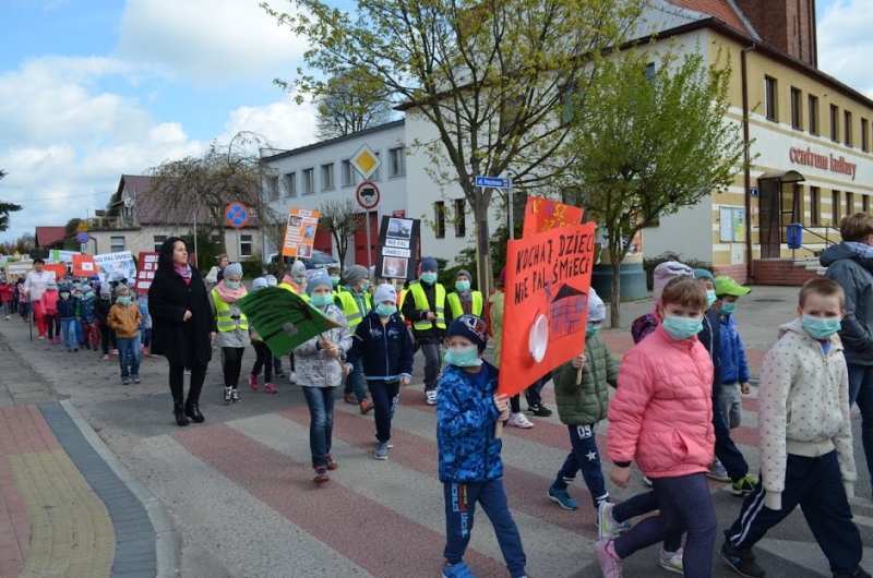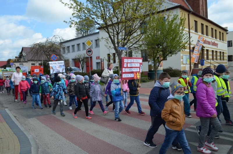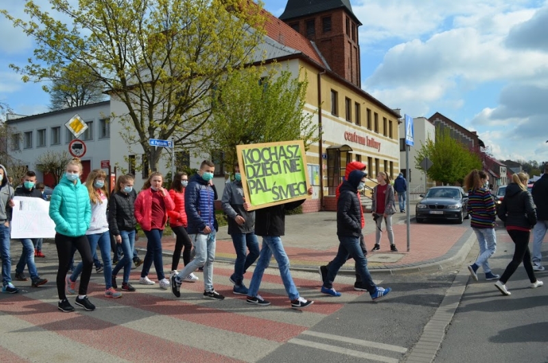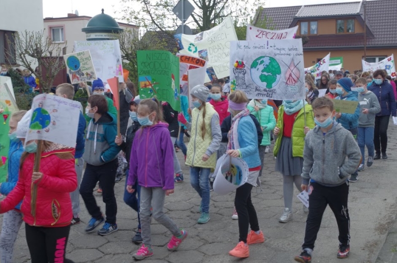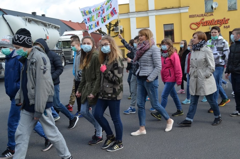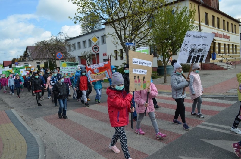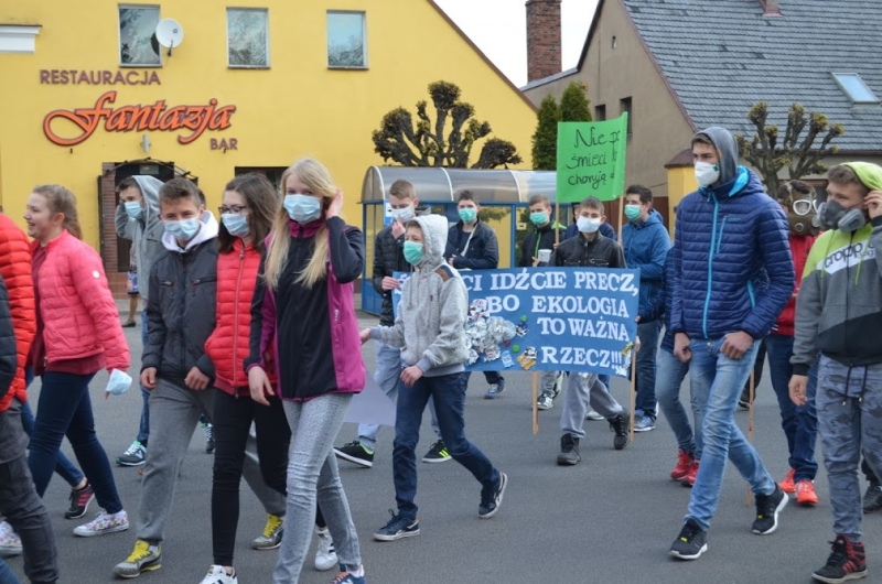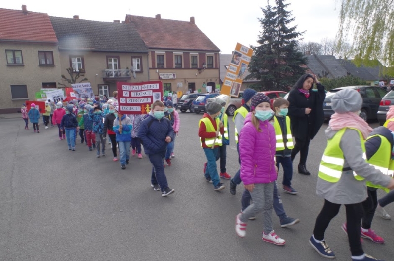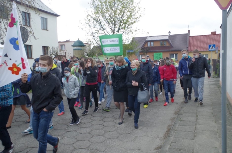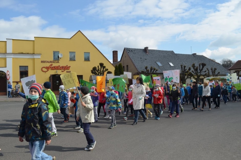 Najważniejszym punktem obchodów Dnia Ziemi był przemarsz ulicami Wielichowa całej społeczności szkolnej oraz przedszkola „Świat Bajek” z zaproszoną Panią Burmistrz. Korowód miał na celu zwrócić uwagę społeczeństwa na problem spalania śmieci w Gminie Wielichowo, dlatego uczniowie i przedszkolacy przeszli przez ulice naszego miasteczka w maseczkach na twarzach z hasłami promującymi niepalenie odpadami. Młodzież szkolna podczas przemarszu rozdawała mieszkańcom Wielichowa ulotki informujące o szkodliwości palenia śmieciami. Ulotki, które otrzymali przechodnie są wynikiem pracy uczniów w ramach konkursu gminnego „Nie pal śmieci, dbaj o zdrowie dzieci.”