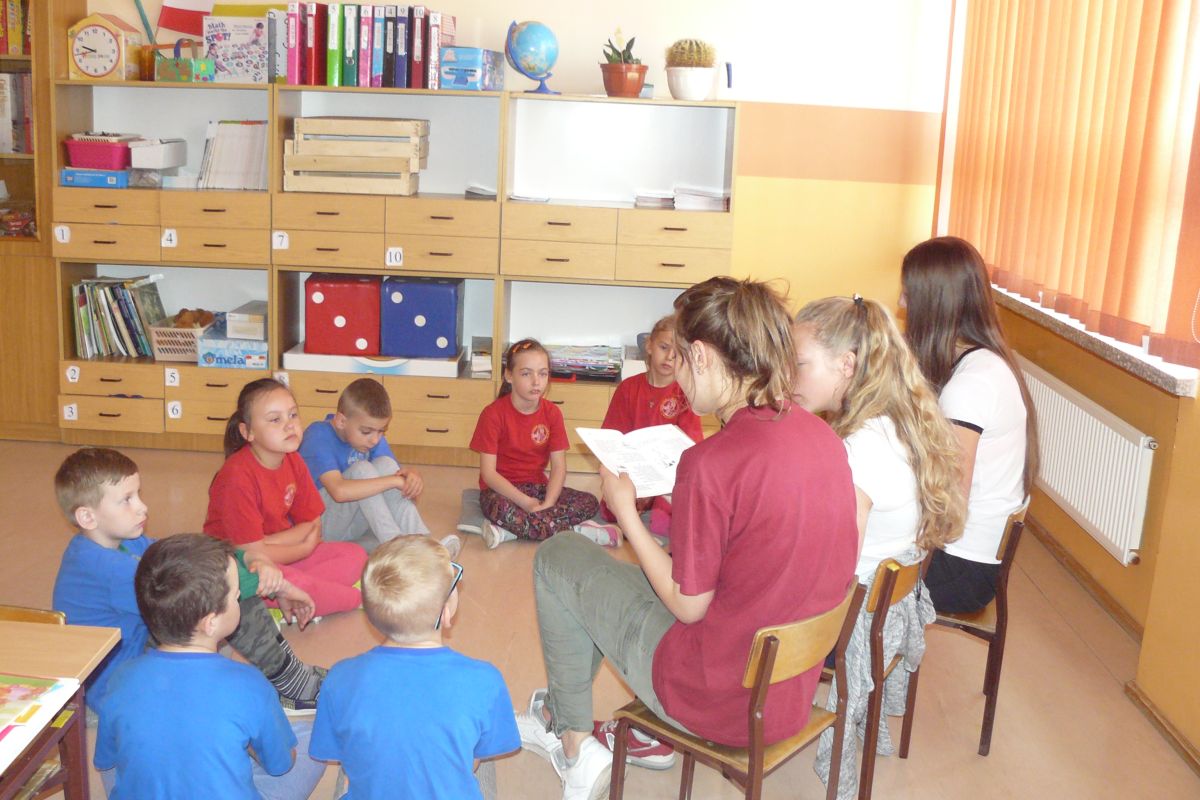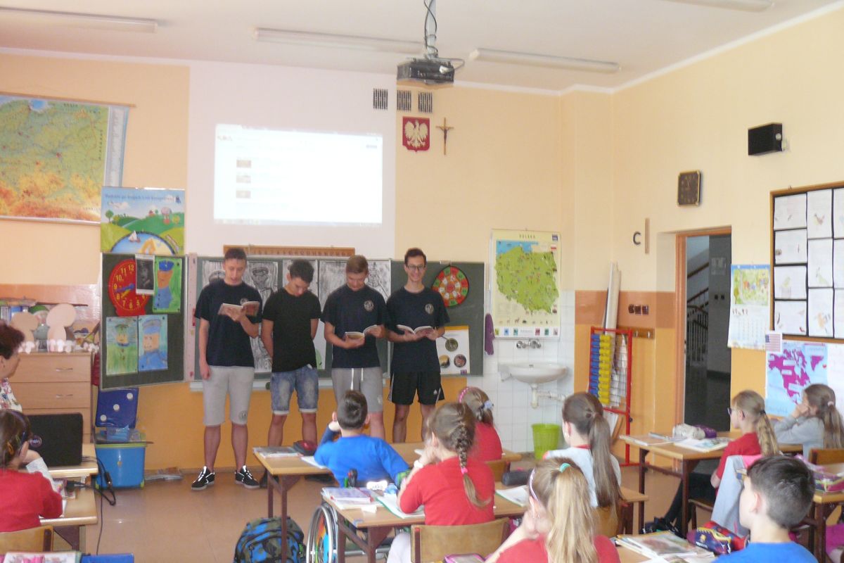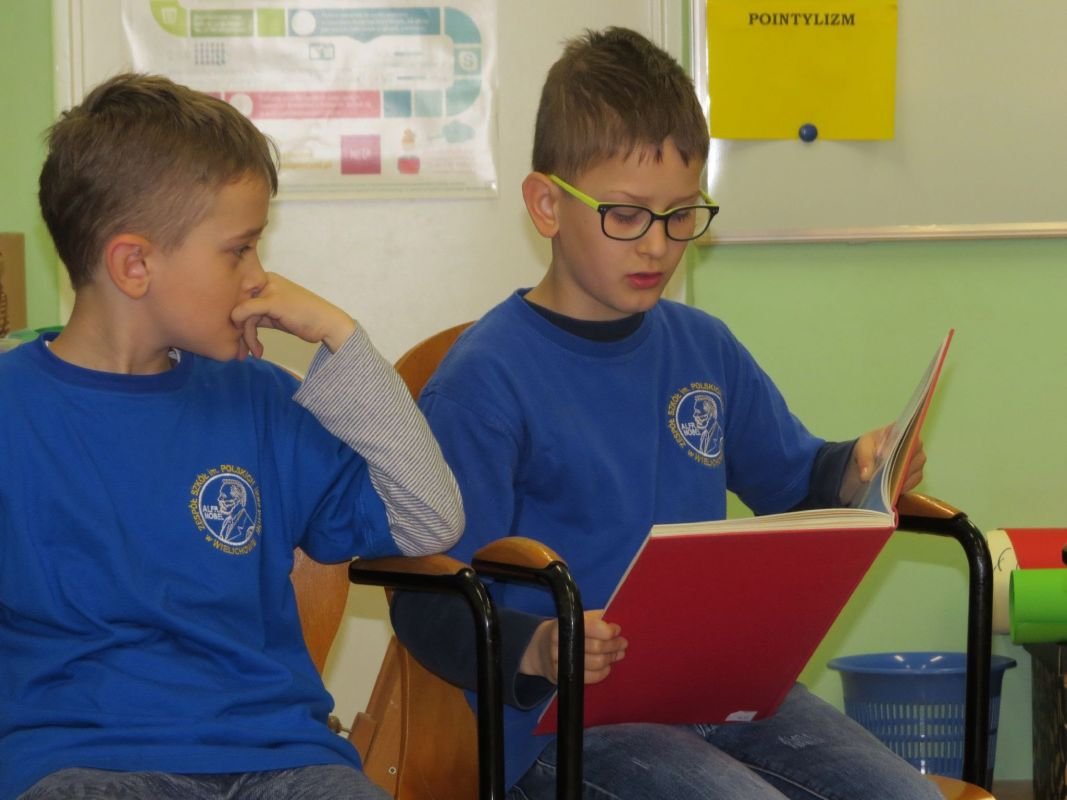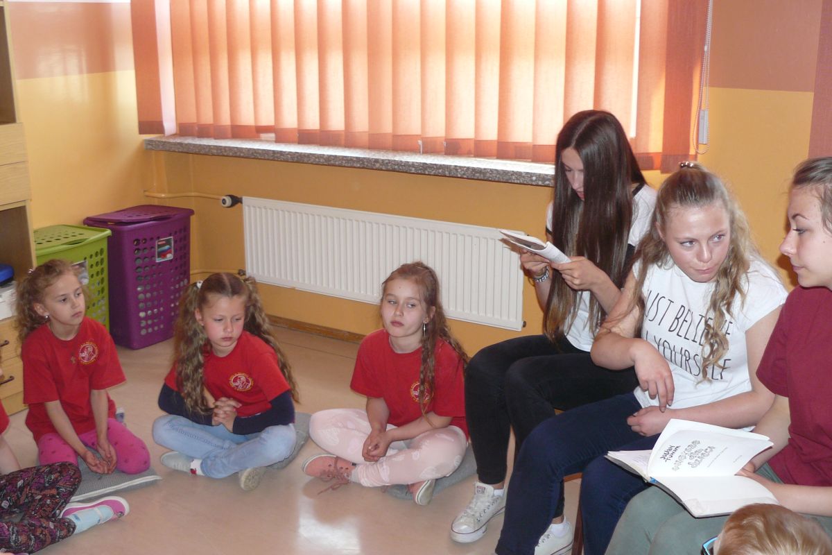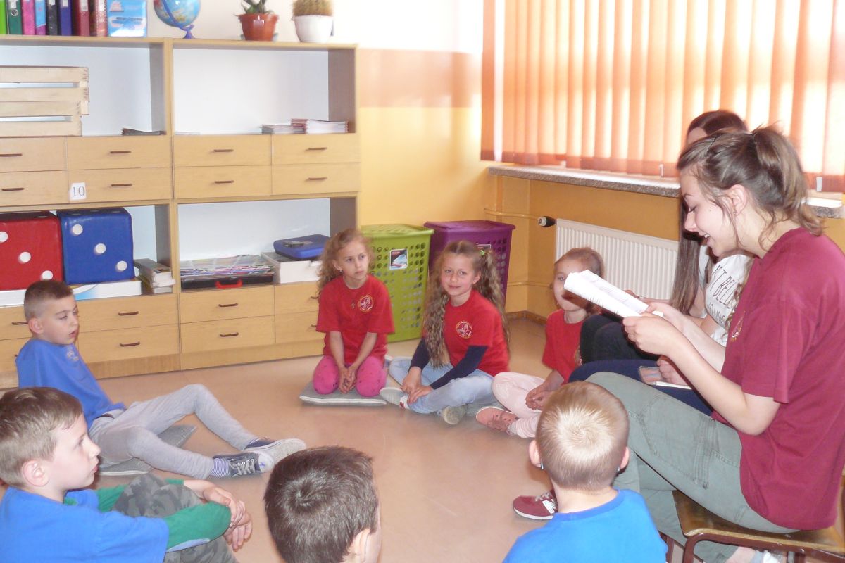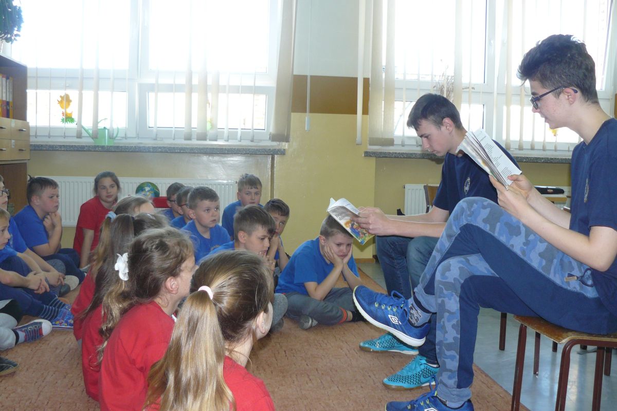Po raz kolejny uczniowie z klas  II i III gimnazjum czytali fragmenty książek  uczniom klas II i III szkoły podstawowej. Tym razem lektorzy z klas gimnazjalnych wystąpili z nietypowym dla siebie  repertuarem,  prezentując swym młodszym kolegom teksty Jana Brzechwy i Juliana Tuwima. Przedstawione z humorem teksty o „Grzesiu kłamczuchu” czy „Rycerzu Krzykawskim” i wiele innych bardzo się podobały. Młodsi  odwzajemnili  starszym  czytając krótkie opowiadania, które  zostały nagrodzone gromkimi oklaskami  przez gimnazjalistów.