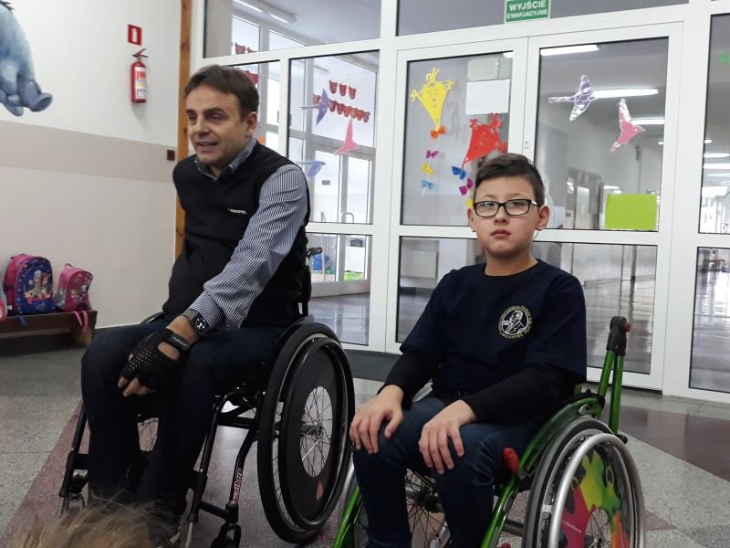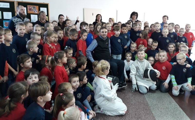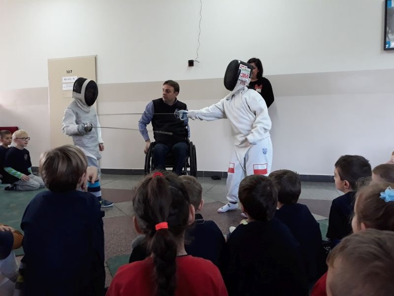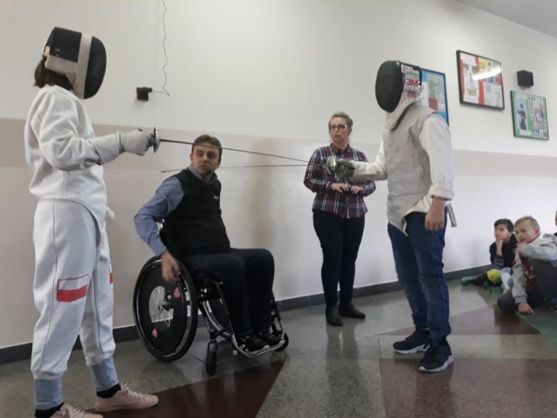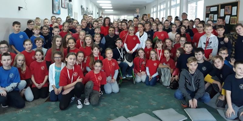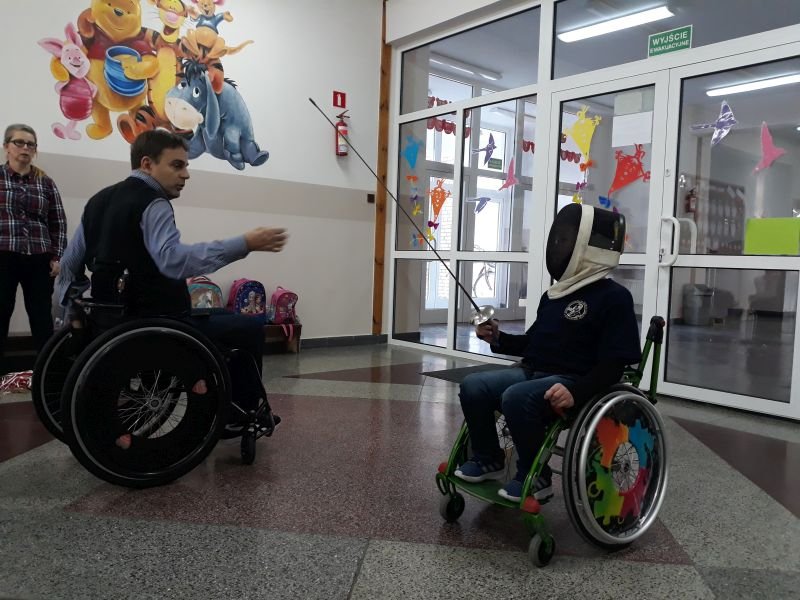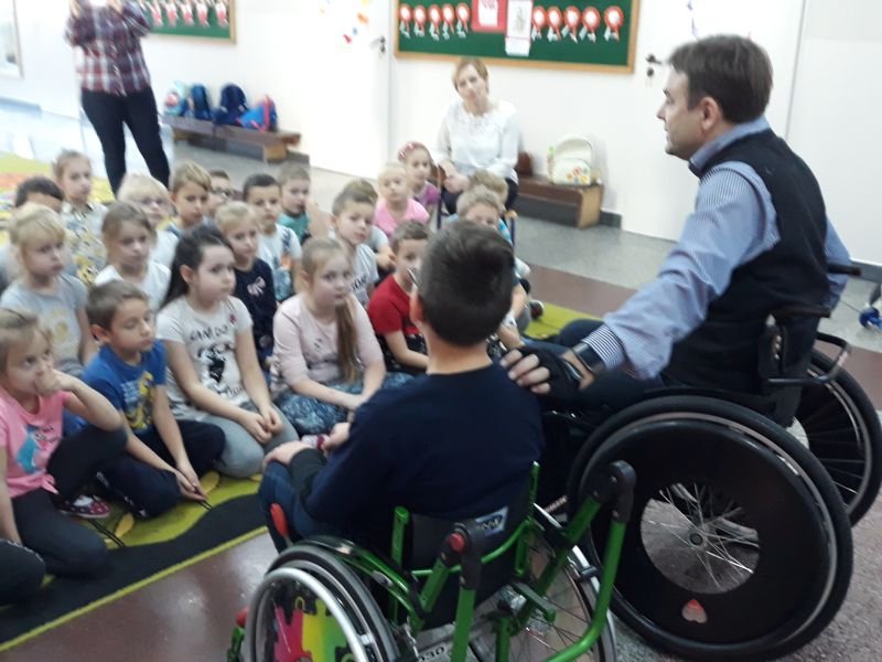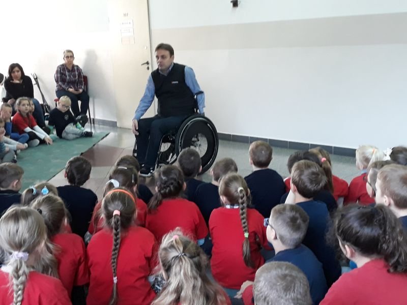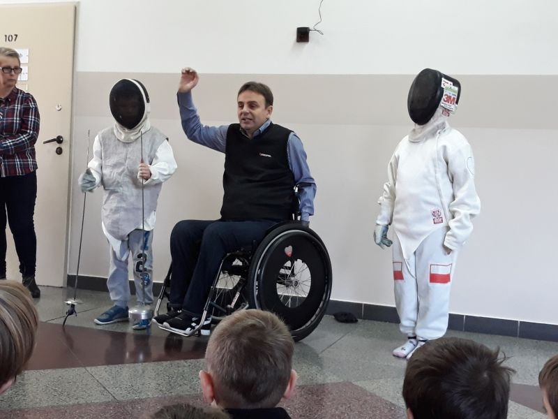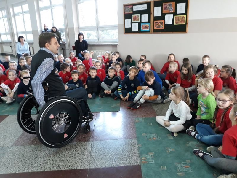 W dniach od 26 do 30 listopada br. w Szkole Podstawowej im. Polskich Noblistów w Wielichowie obchodzono Tydzień tolerancji i życzliwości. Z tej okazji w czwartek 29 listopada odbyło się spotkanie z Panem Mirosławem Chudym sportowcem, człowiekiem niezwykle aktywnym społecznie, radnym gminy Września, ale przede wszystkim człowiekiem z pasją i zaangażowaniem, które pomagają mu przełamywać bariery i realizować najbardziej szalone marzenia. W latach 2003 – 2010 był członkiem kadry narodowej szermierzy na wózkach. Ma na swoim koncie liczne sukcesy i medale. Jego działalność społeczna z dziećmi zaczęła się od akcji „Cała Polska Czyta Dzieciom”, w ramach której zaczął odwiedzać przedszkola i czytać najmłodszym bajki. Z czasem rozbudował te spotkania o pogadanki o tolerancji, integracji osób niepełnosprawnych, a opowiadane przez niego historie nabrały wymiaru edukacyjnego. Obecnie p. Mirek pracuje jako specjalista ds. jakości i reklamacji. Opowiedział uczniom historię swojego życia, a swoją opowieścią pokazał, że każdy, jeśli tylko chce, może wyjść z różnych opresji i żyć, nawet po najcięższych doświadczeniach losu. Trzeba mieć tylko pasję, wiarę, upór i determinację. Uczniowie i nauczyciele wysłuchali prelekcji na temat pasji, bezpieczeństwa, tolerancji, a także radzenia sobie w różnych sytuacjach życiowych. Finał spotkania każdej z grup zakończył się szermierką na wesoło, która okazała się strzałem w dziesiątkę. Mieli okazję powalczyć uczniowie i nauczyciele. Nasz gość jako lektor wziął również udział w akcji "Cała Polska czyta dzieciom", czytając wiersz „Lokomotywa” uczniom klas I-III. Pan Mirek każdego dnia pokazuje, że nie ma barier, i że nic nie jest niemożliwe. To była potrzebna lekcja.