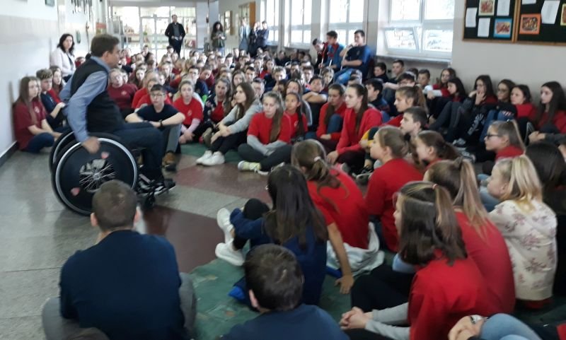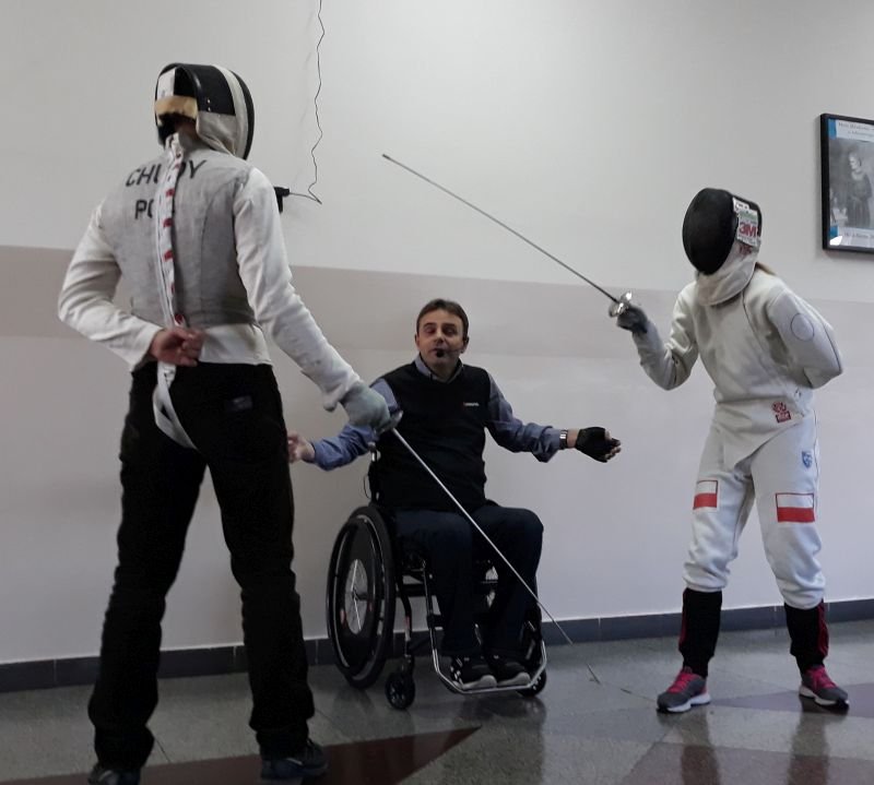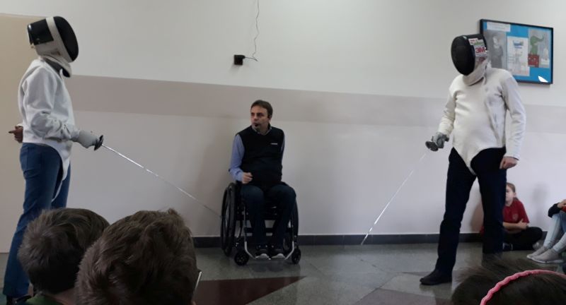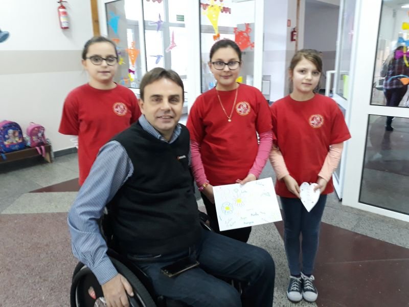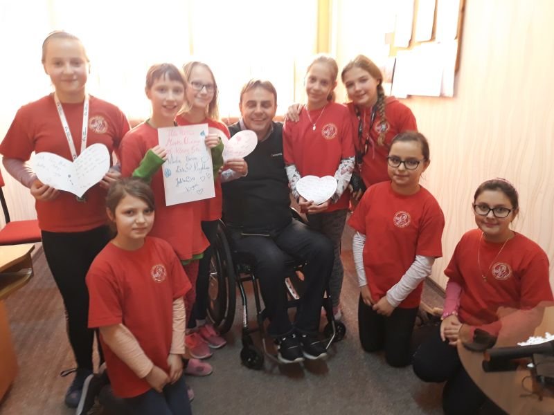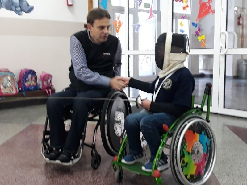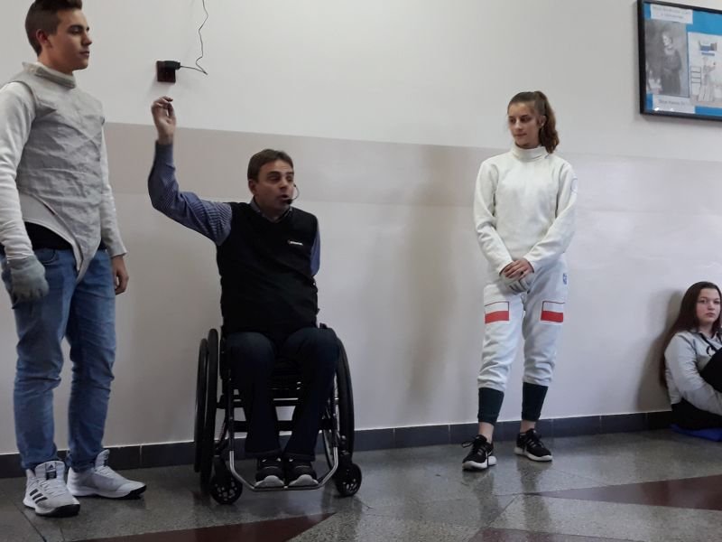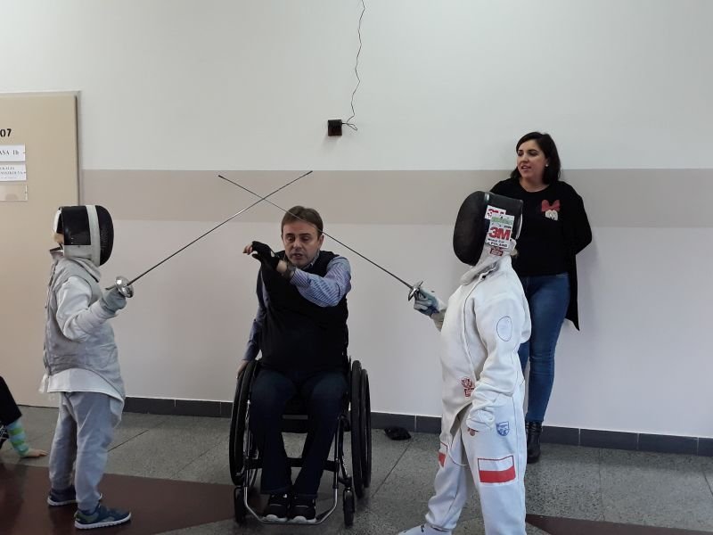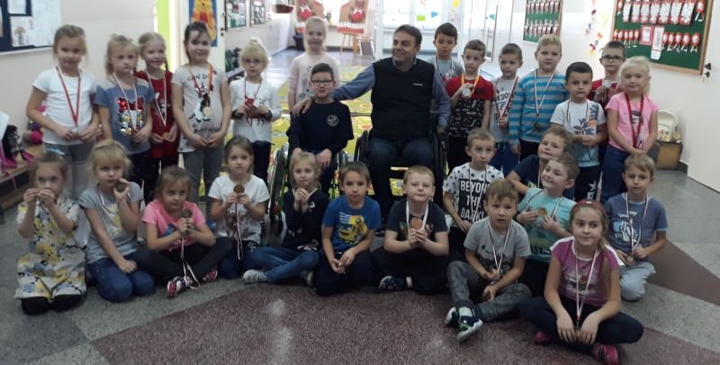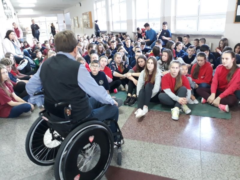 W dniach od 26 do 30 listopada br. w Szkole Podstawowej im. Polskich Noblistów w Wielichowie obchodzono Tydzień tolerancji i życzliwości. Z tej okazji w czwartek 29 listopada odbyło się spotkanie z Panem Mirosławem Chudym sportowcem, człowiekiem niezwykle aktywnym społecznie, radnym gminy Września, ale przede wszystkim człowiekiem z pasją i zaangażowaniem, które pomagają mu przełamywać bariery i realizować najbardziej szalone marzenia. W latach 2003 – 2010 był członkiem kadry narodowej szermierzy na wózkach. Ma na swoim koncie liczne sukcesy i medale. Jego działalność społeczna z dziećmi zaczęła się od akcji „Cała Polska Czyta Dzieciom”, w ramach której zaczął odwiedzać przedszkola i czytać najmłodszym bajki. Z czasem rozbudował te spotkania o pogadanki o tolerancji, integracji osób niepełnosprawnych, a opowiadane przez niego historie nabrały wymiaru edukacyjnego. Obecnie p. Mirek pracuje jako specjalista ds. jakości i reklamacji. Opowiedział uczniom historię swojego życia, a swoją opowieścią pokazał, że każdy, jeśli tylko chce, może wyjść z różnych opresji i żyć, nawet po najcięższych doświadczeniach losu. Trzeba mieć tylko pasję, wiarę, upór i determinację. Uczniowie i nauczyciele wysłuchali prelekcji na temat pasji, bezpieczeństwa, tolerancji, a także radzenia sobie w różnych sytuacjach życiowych. Finał spotkania każdej z grup zakończył się szermierką na wesoło, która okazała się strzałem w dziesiątkę. Mieli okazję powalczyć uczniowie i nauczyciele. Nasz gość jako lektor wziął również udział w akcji "Cała Polska czyta dzieciom", czytając wiersz „Lokomotywa” uczniom klas I-III. Pan Mirek każdego dnia pokazuje, że nie ma barier, i że nic nie jest niemożliwe. To była potrzebna lekcja.