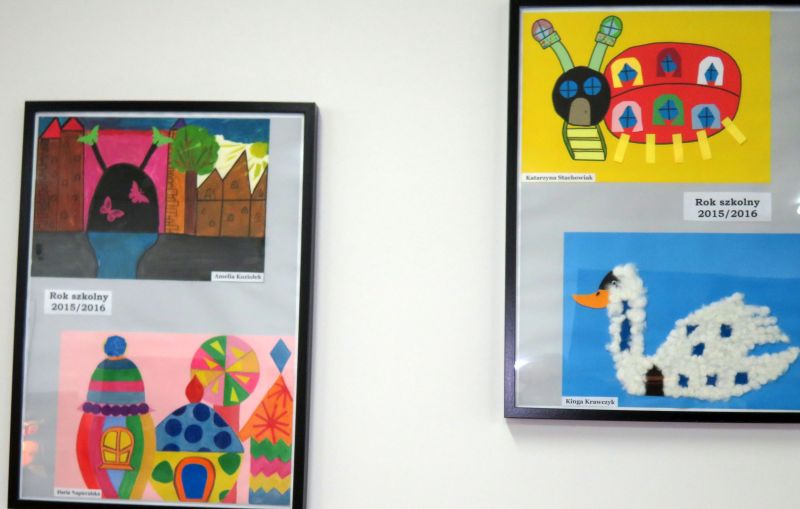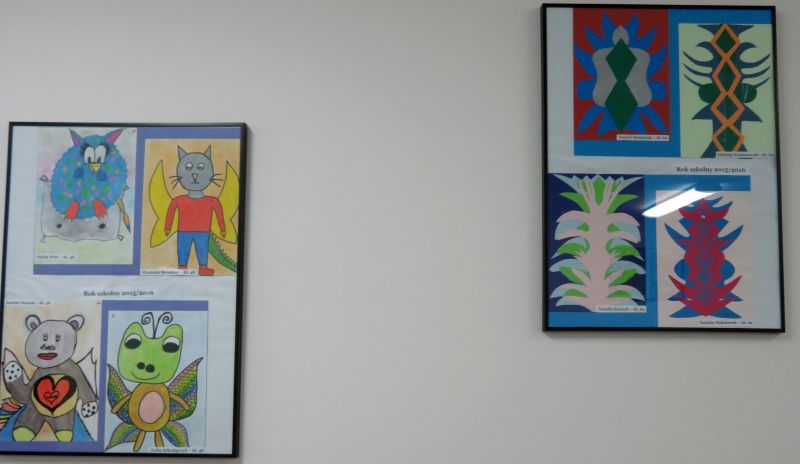 Korytarz na drugim i pierwszym piętrze szkoły podstawowej oraz tzw. łącznik zdobią wykonane najróżniejszymi technikami na lekcjach plastyki i techniki prace uczniów. Galeria powstawała przez kilka lat.
