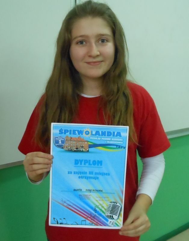 19 listopada trzy uczennice naszej szkoły, Teresa Drgas, Łucja Michalska i Agata Frąckowiak, wzięły udział w Przeglądzie Piosenki Dziecięcej i Młodzieżowej „Śpiewolandia”, który odbył się w Szkole Podstawowej nr 1 w Wolsztynie. Inicjatorem przedsięwzięcia był dyrektor Wolsztyńskiego Domu Kultury, pan Jarosław Świrszcz. W przeglądzie uczestniczyło ok. 60 wykonawców w trzech kategoriach wiekowych.