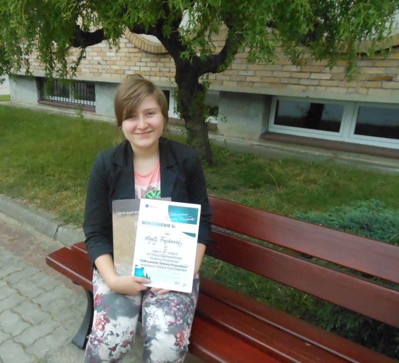 Agata Frąckowiak uczennica kl. 6b została wyróżniona w V edycji Ogólnopolskiego Konkursu Poetyckiego „Odkrywamy Talenty Przyszłości”, który odbywał się pod patronatem Mazowieckiego Kuratora Oświaty. Organizatorem konkursu była  Fundacja Instytut Nowoczesnej Edukacji oraz Niepubliczne Gimnazjum nr 54 z oddziałami dwujęzycznymi w Warszawie.