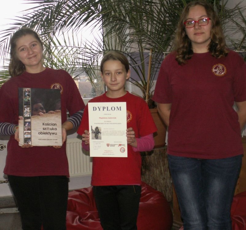 Naszą szkołę reprezentowały 3 uczennice: Magdalena Jankowiak z kl. 6b, Agata Frąckowiak z kl. II b i Marianna Czapla z kl. II a. Najlepiej z trudną gwarą wielkopolską poradziła sobie Agata Frąckowiak, która zajmując szóste miejsce, została finalistką konkursu.