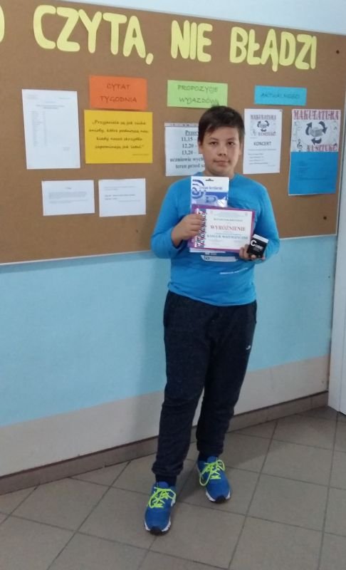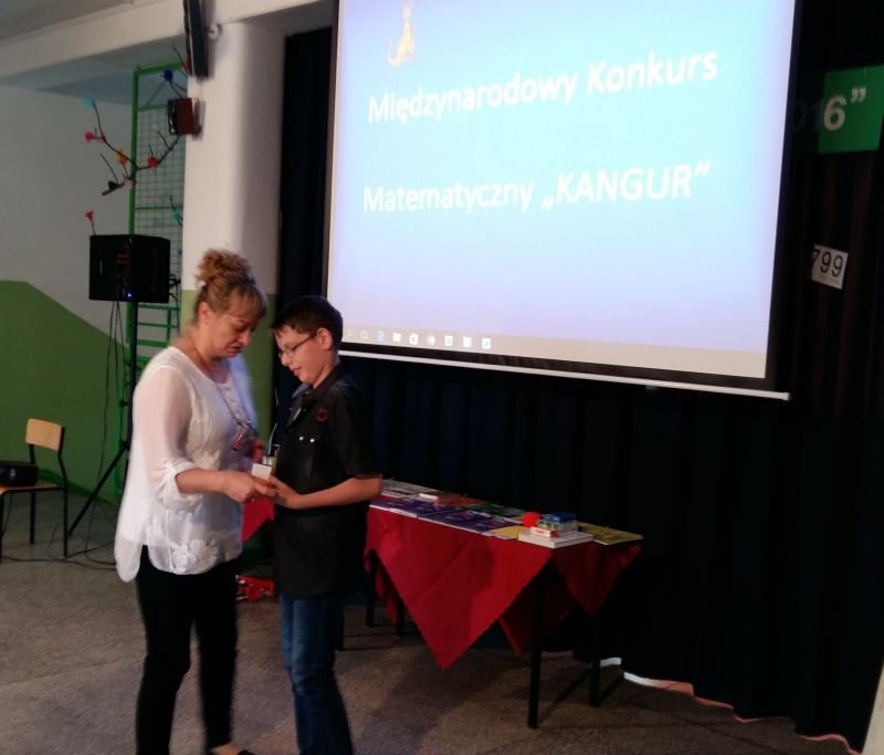 Dnia 17 czerwca 2016 r. w Zespole Szkół im. Jana Pawła II w Ptaszkowie odbyło się powiatowe podsumowanie XXV edycji Międzynarodowego Konkursu Matematycznego – „KANGUR”. Dwoje uczniów naszej szkoły: Oskar Krawczyk ( 6b – szkoła podstawowa), Krystian Ratajczak( IIa- gimnazjum) - otrzymało wyróżnienie. Po obejrzeniu krótkiego programu artystycznego uczniowie otrzymali nagrody książkowe, dyplomy i kostki Rubika. Zwycięzcom gratulujemy i życzymy kolejnych sukcesów.