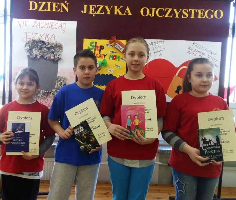 W turnieju o tytuł Mistrza Poprawnej Polszczyzny zwyciężyła klasa 4a w składzie: Zuzanna Misiorna, Katarzyna Stachowiak i Julia Wojciechowska.